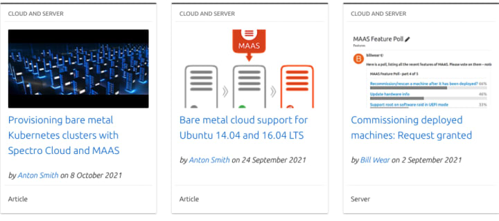 We have very interesting resources about MAAS, but they are in different locations and it is not easy to find all of them. Therefore, this iteration we focused on the design of a new section in https://maas.io/ called “Resources”.