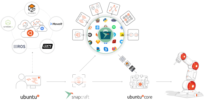Embedded Linux development is easy on Ubuntu Core, a flavour of Ubuntu optimised for security and reliable updates and fit for the IoT and embedded environments. It’s easy to deploy, tamper-resistant, and hardened against corruption. Its read-only root filesystem is built from the same packages used in the Ubuntu family of Linux distributions but differs in how its snap packages are delivered and updated. Snaps are secure, confined, dependency-free, cross-platform, containerised software packages that bundle their dependencies and ensure a clean separation between the base system and the installed applications on Ubuntu Core.