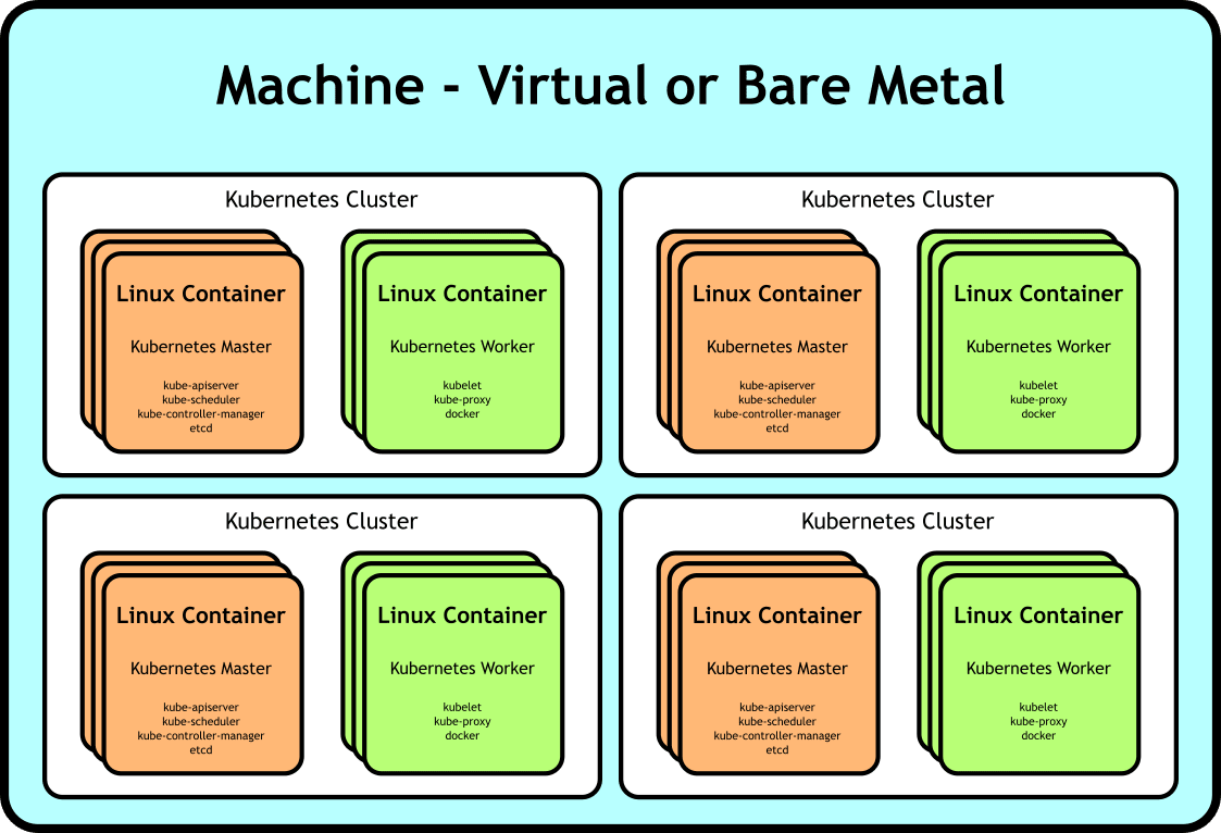 Generic multi-cluster deployment of Kubernetes on top of Linux containers